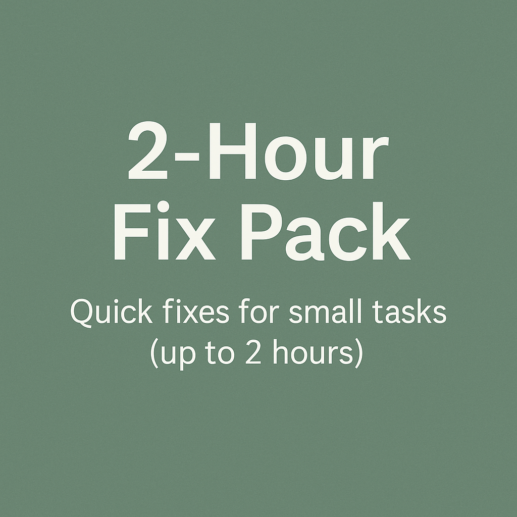 This package provides prepaid credit for up to 2 hours of additional work, billed at the standard rate of $50/hour. It’s designed for small-scale tasks such as minor bug fixes, quick design adjustments, light plugin configuration, or troubleshooting issues that do not require a full maintenance plan.